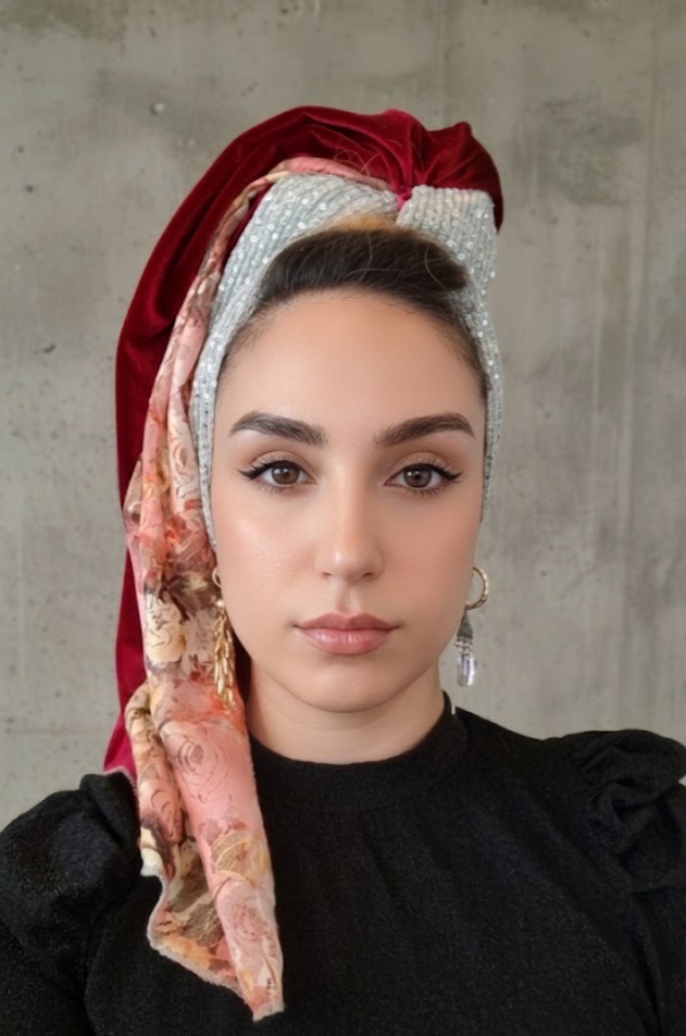 דגם אודם | שילוב של פייט כסוף, קטיפה בורדו ותחרה פרחונית בגוונים שמחים וייחודיים.